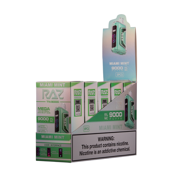 - Flavor: Step into a tropical paradise with Miami Mint Raz TN9000, available now at Vaping.com. This invigorating blend combines the refreshing coolness of mint with the vibrant energy of Miami’s summer, delivering a vaping experience that’s as lively as the city it represents. Don’t miss out on this refreshing escape!