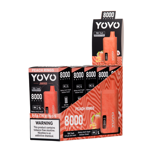 - Flavor: The Peach Rings YOVO Bar vape uses sugary peach taste that will remind you of the popular peach confection.