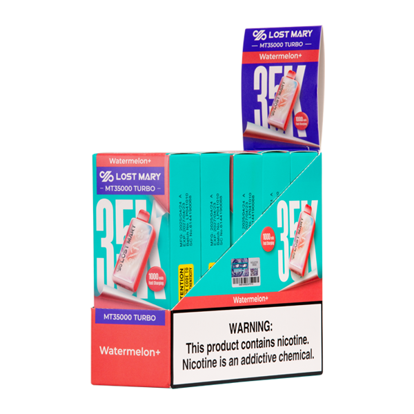 - Flavor: The Watermelon+ Lost Mary MT35000 Turbo holds its flavors from the first puff to the last and tastes of ripe watermelon.