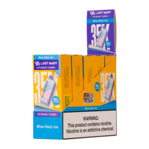 - Flavor: The Blue Razz Ice Lost Mary MT35000 Turbo holds its flavors from the first puff to the last and unleashes a cloud of tart and sweet iced blue raspberry.