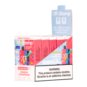 The Dragon Strawnana Off Stamp SW16000 KIT combines alluring tropical flavors with perfectly ripe red strawberry notes. The kit has everything you need to enjoy the Off Stamp vape experience.