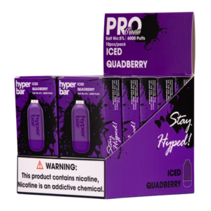 The Iced Quadberry Hyper Bar Pro 6000 disposable vape, available at Vaping.com, expertly combines bold flavors of raspberry, blueberry, blackberry, and strawberry with a refreshing ice finish.